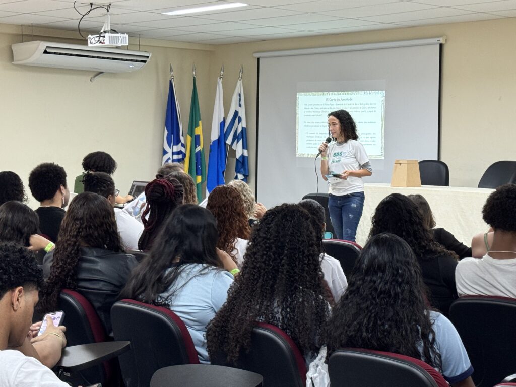 Os participantes iniciaram o dia com uma dinâmica de integração, estimulando o diálogo, o reconhecimento mútuo e a troca de experiências entre os jovens.