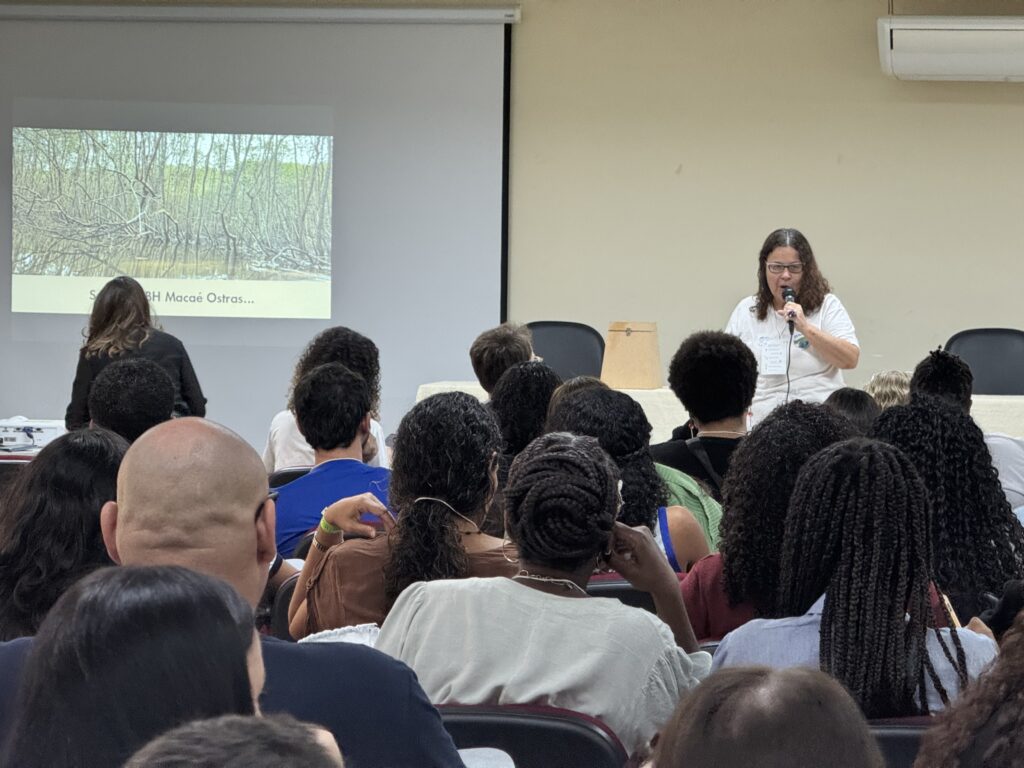 Em seguida, a mesa redonda com o tema “10 anos das juventudes em defesa das águas e os caminhos para 2026” foi mediada pela educadora e representante da Associação Raízes no CBH Macaé Ostras, Aline Lázaro, e contou com as participações da professora e ex-coordenadora da CTEACOM, Virgínia Villas Boas Sá Rego, do engenheiro ambiental Philipe de Barros, do engenheiro florestal Tom Adnet, da ativista e ex-coordenadora de políticas públicas para a juventude do município de Macaé, Andressa Dantas, e da coordenadora da CTEACOM, Thayná Fernandes.