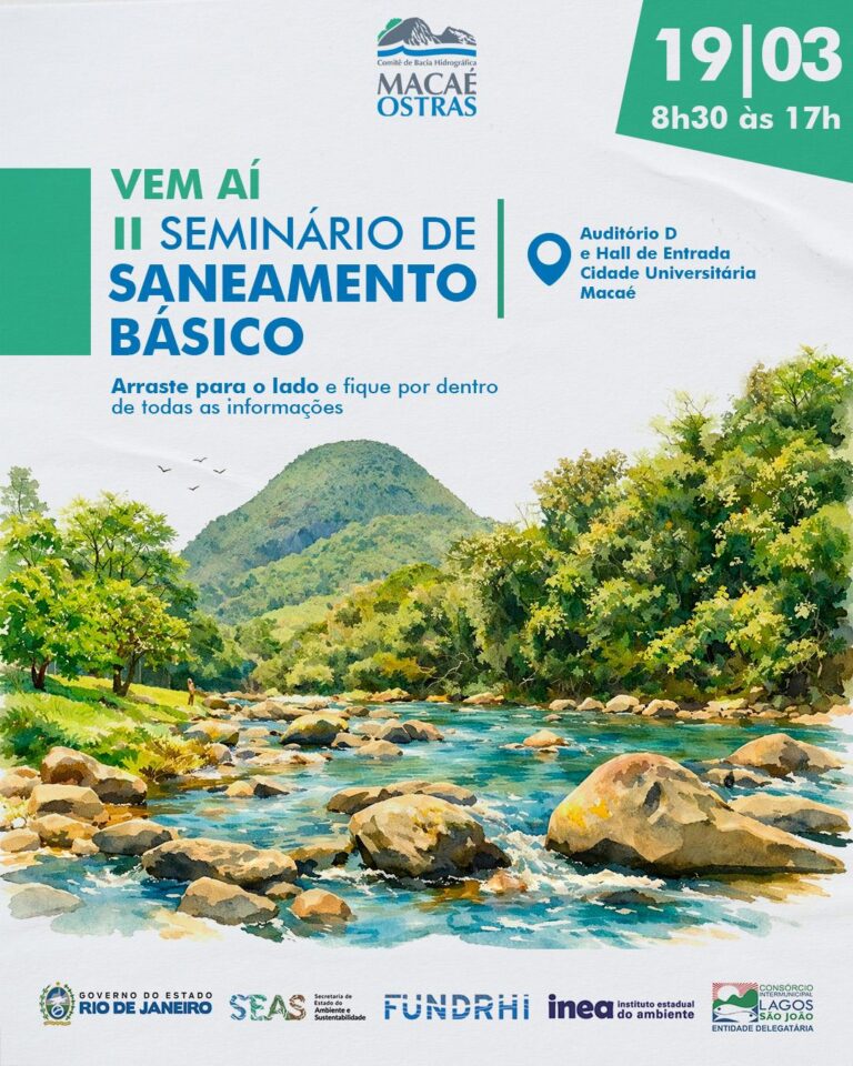 O II Seminário de Saneamento Básico, promovido pelo Comitê de Bacia Hidrográfica dos rios Macaé e das Ostras (CBH Macaé Ostras) já está com as
