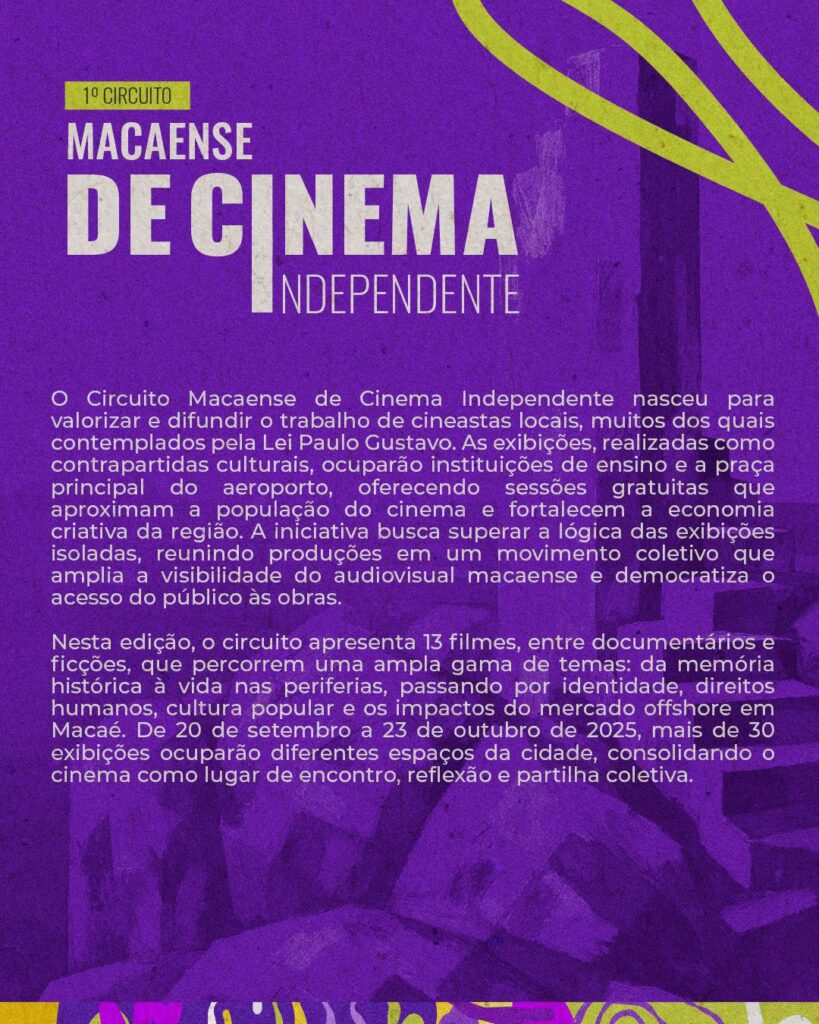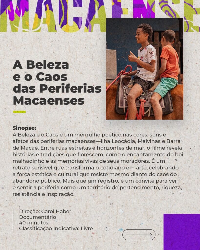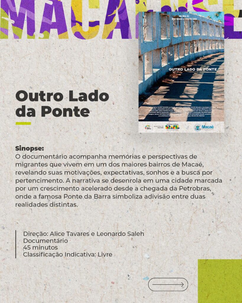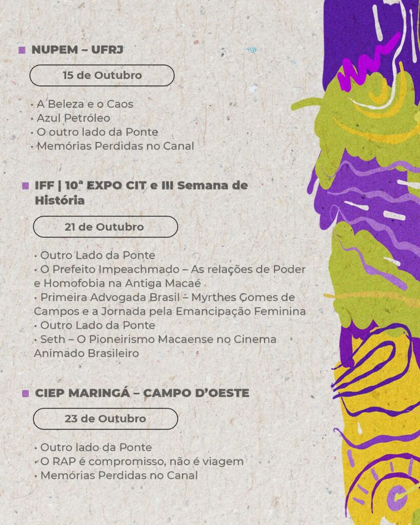 Com incentivo da Lei Paulo Gustavo, o filme será apresentado no NUPEM/UFRJ (15/10), na Escola Municipal Paulo Freire (17/10) e no Instituto Federal Fluminense – IFF Macaé (21/10). Após cada exibição, haverá rodas de conversa com estudantes, professores, pesquisadores, representantes de movimentos ambientais e membros do CBH Macaé Ostras, estimulando o debate sobre memória, território e conservação das águas.
